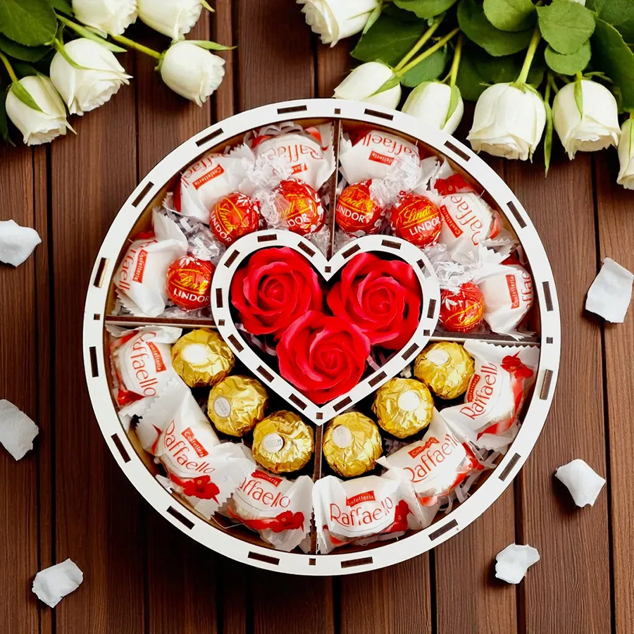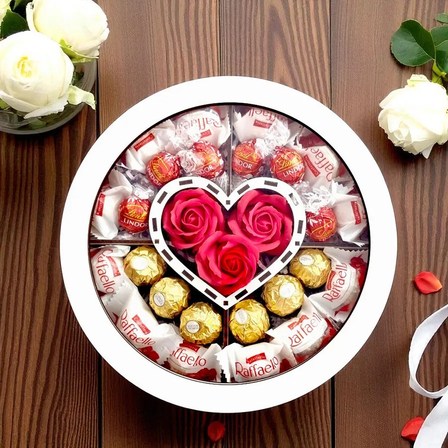 🎁 Prezent dla żony bez okazji to subtelny sposób, by powiedzieć „kocham” bez słów. ❤️ Okrągłe białe pudełko z sercem w środku skrywa romantyczne niespodzianki: 🌹 czerwone róże mydlane, 🍬 wykwintne Raffaello, 🍫 Ferrero Rocher i Lindor. ✨ Całość zamknięta w estetycznym opakowaniu z płyty HDF, które zachwyca trwałością i precyzją wykonania. 🎀 To idealna propozycja, gdy chcesz sprawić radość bliskiej osobie bez konkretnej okazji. 📦 Upominek gotowy do wręczenia – bez potrzeby dodatkowego pakowania. 💌 Przekonaj się, że drobny gest może mieć ogromne znaczenie.