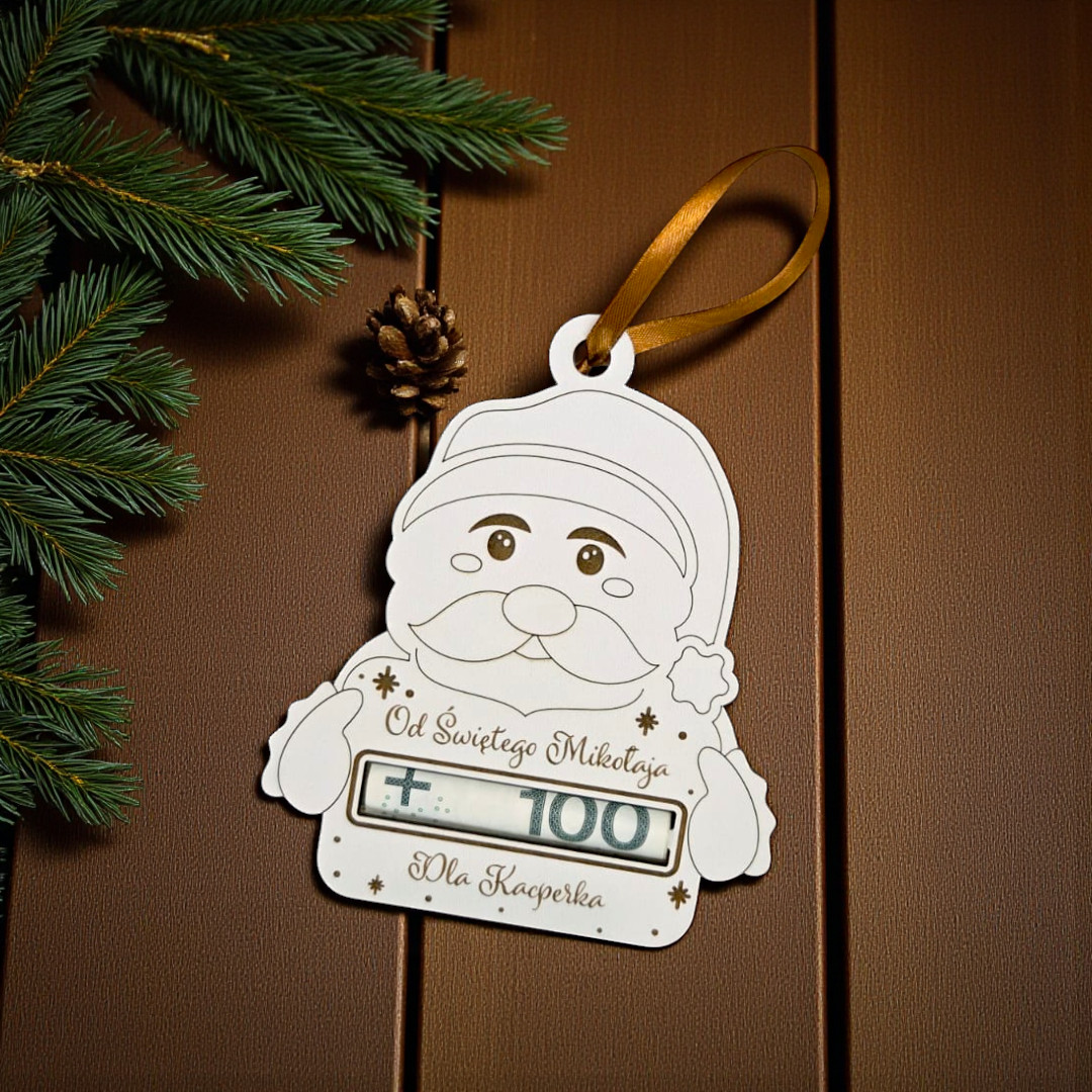 🎄 Personalizowane bombki na choinkę to wyjątkowy sposób, by nadać prezentom jeszcze więcej magii! Nasza bombka w kształcie Mikołaja to urocza ozdoba z miejscem na banknot – idealna, by podarować drobiazg w oryginalnej formie. 🎅