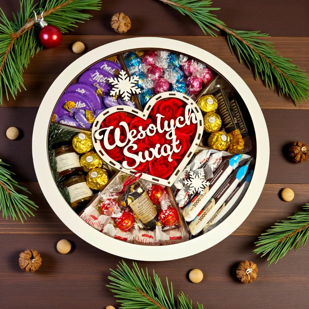 W zestawie znajdują się praliny Lindor, wykwintne Ferrero Rocher, miękkie Raffaello oraz duet Kinder Bueno. Ich połączenie tworzy słodką mozaikę smaków, która idealnie komponuje się ze świąteczną atmosferą. To zestaw dla tych, którzy cenią sobie zarówno klasyczne smaki, jak i chwile spokoju przy filiżance ulubionej herbaty.
