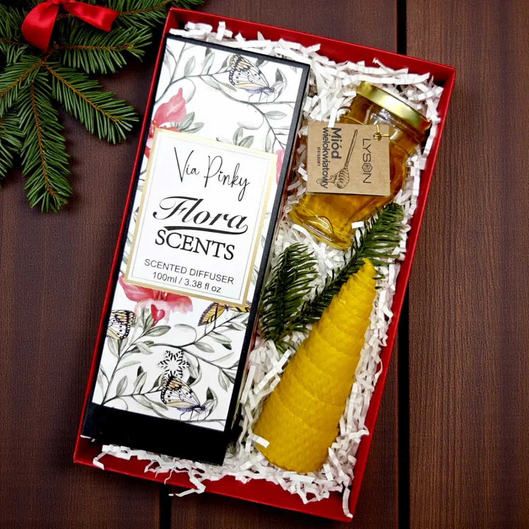 Jeśli chcesz podarować coś neutralnego, eleganckiego i jednocześnie praktycznego, ten zestaw sprawdzi się idealnie. Wprowadza do domu światło, zapach i naturalną słodycz, dzięki czemu stanowi piękny dodatek do zimowych wieczorów. To prezent, który będzie odpowiedni dla każdego – bez względu na wiek czy okazję ❄️.