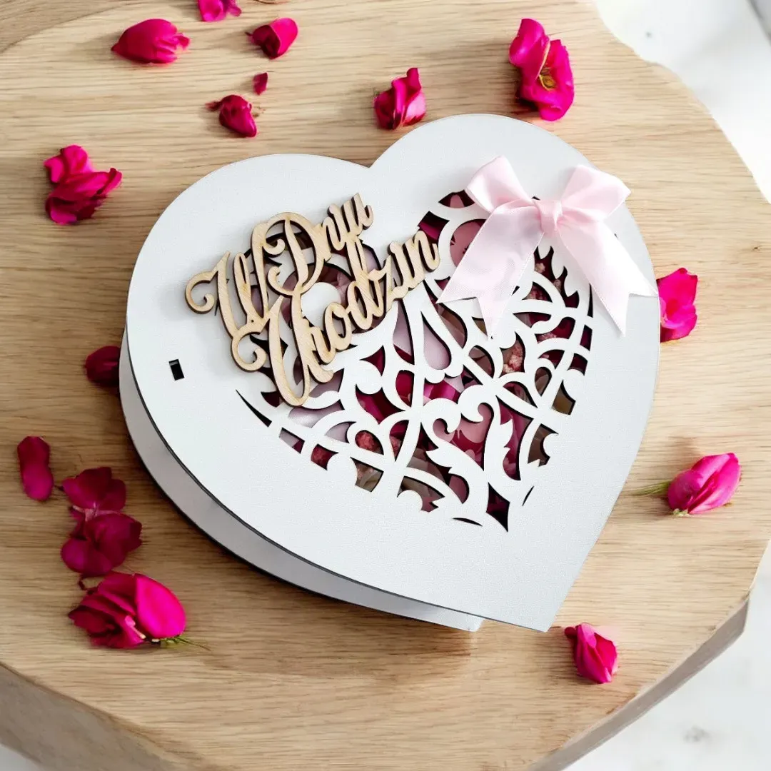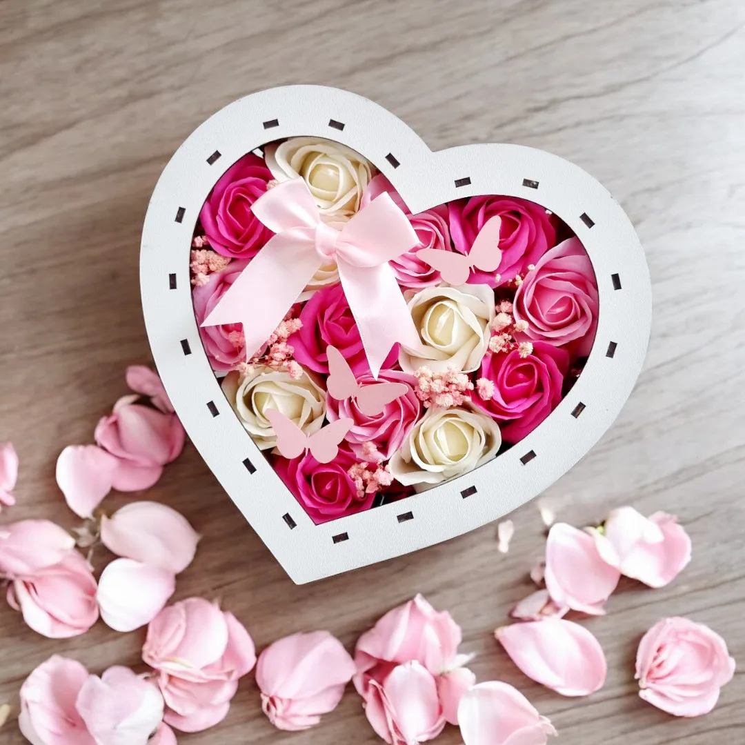 Kwiatowe serce na urodziny z ażurowym wieczkiem odpowiada właśnie na taką potrzebę. Łączy dekoracyjne pudełko, kwiatową kompozycję i delikatne wykończenie, dzięki czemu tworzy spójny i estetyczny upominek na wyjątkową okazję.